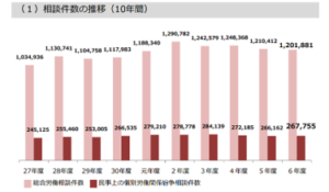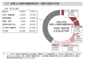 下図は、厚生労働省HP「令和6年度個別労働紛争解決制度の施行状況」です